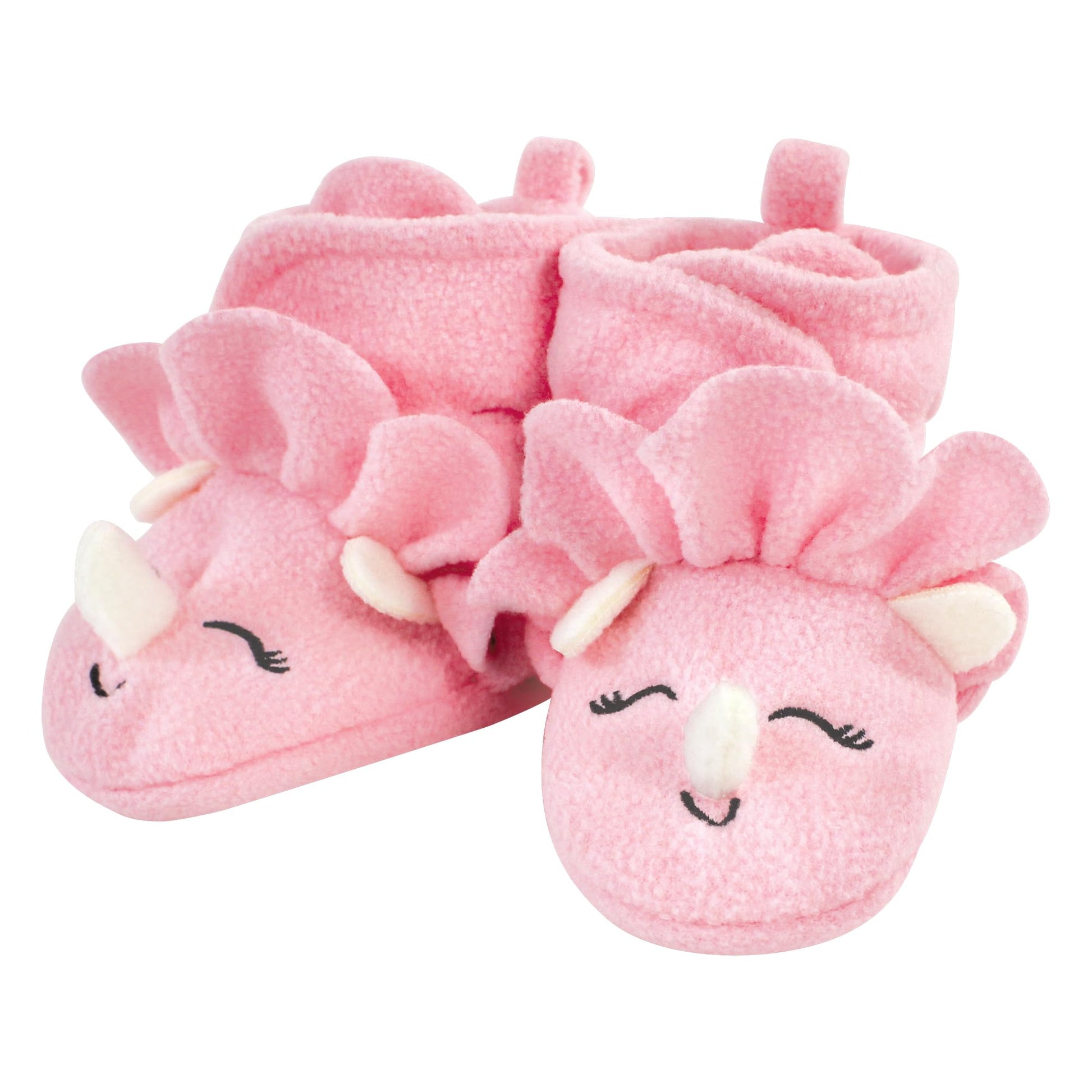 Hudson Baby fleece booties are comfortable, cozy baby booties made with fleece material that will keep your little one's feet warm and comfortable. Our booties wrap around your baby's foot and fasten in the front with a velcro closure, so they are easy to put on, fasten and stay on. Our fleece booties feature non-skid soles to prevent your baby from slipping and falling when they start to walk and run.
